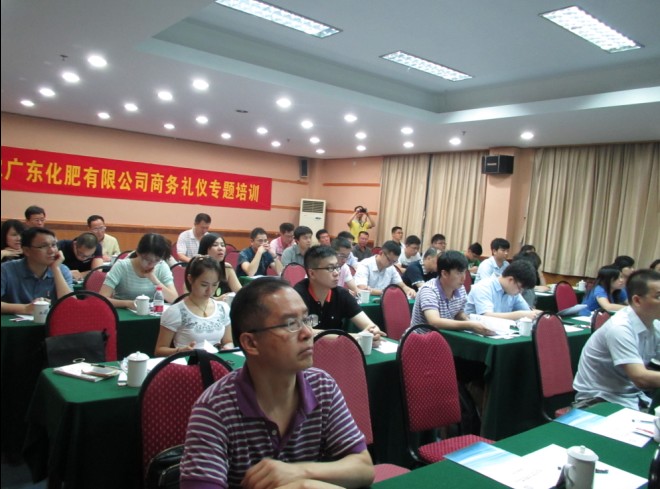 2013年7月,早晨雷雨,午后阳光,中农广东化肥有限公司的员工以饱满的精神状态迎接誉杰公司带来的《商务礼仪》专场培训。
