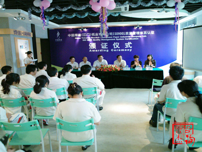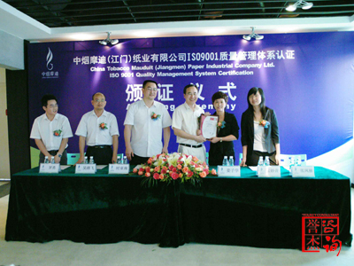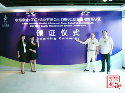 中烟摩迪(江门)纸业有限公司ISO9001颁证仪式